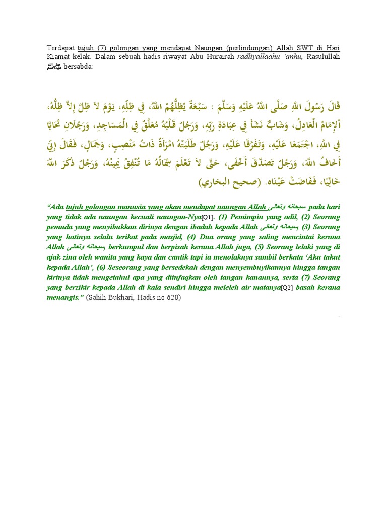 7 Golongan Mendapat Naungan Allah Di Hari Kiamat